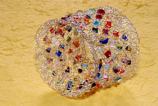 Eines meiner ersten gehäkelten Silberarmbänder. Ich trage es noch immer sehr gerne, da es keinen Verschluß hat und daher federleicht ist.